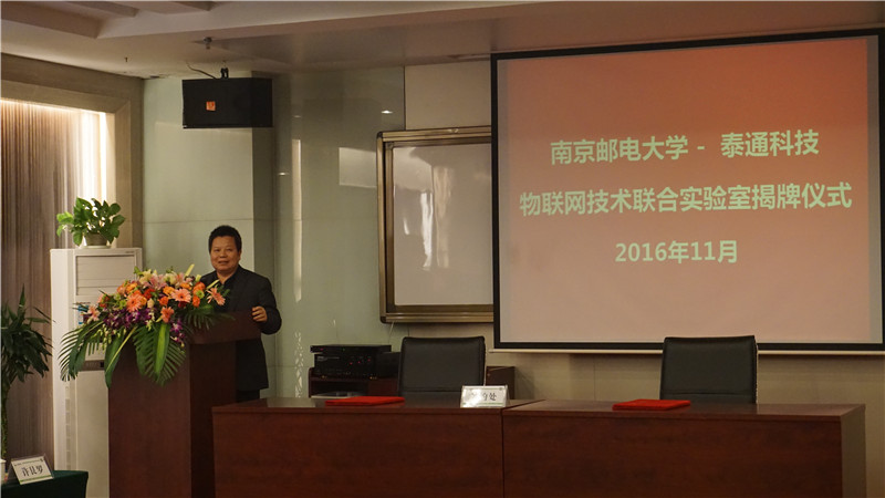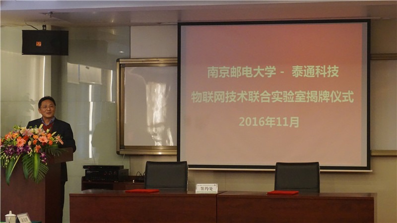 揭牌儀式上泰通科技總工程師陳建平與南京郵電大學通信技術研究所副所長楊龍祥進行了現(xiàn)場簽約,朱校長和吉總共同為“物聯(lián)網(wǎng)聯(lián)合實驗室”揭牌。