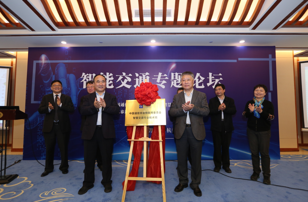 論壇期間,中國(guó)通信學(xué)會(huì)物聯(lián)網(wǎng)委員會(huì)智慧交通專業(yè)技術(shù)組舉行了成立儀式。中國(guó)通信學(xué)會(huì)物聯(lián)網(wǎng)委員會(huì)主任委員朱洪波先生與智慧交通專業(yè)技術(shù)組主任委員鄭斌先生一起在現(xiàn)場(chǎng)百余位嘉賓的見證下進(jìn)行揭牌,并為專技組的委員們頒發(fā)聘書。