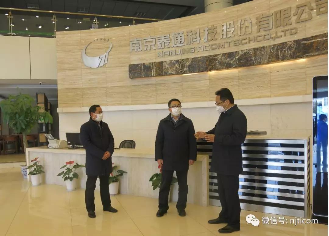 2020年2月19日,南京市雨花臺(tái)區(qū)區(qū)長副書記張連春、副區(qū)長雨花經(jīng)濟(jì)開發(fā)區(qū)黨工委書記張建設(shè)、軟件谷管委會(huì)副主任卞艷艷一行至泰通指導(dǎo)疫情期間企業(yè)復(fù)工情況,泰通科技董事長吉榮新進(jìn)行了匯報(bào)。