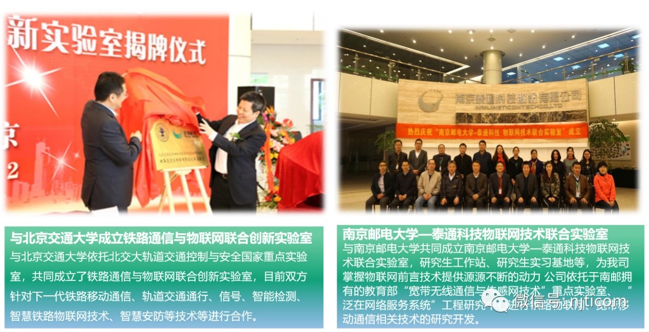 科技創(chuàng)新的成功與建立產(chǎn)學(xué)研合作平臺、引進(jìn)高層次的技術(shù)團(tuán)隊、重視技術(shù)人才的培養(yǎng)與激勵等密不可分。目前泰通科技與南京郵電大學(xué)、北京交通大學(xué)、東南大學(xué)、中國科學(xué)技術(shù)大學(xué)、南京航空航天大學(xué)、陸軍工程大學(xué)等多所國內(nèi)知名高校建立了聯(lián)合實驗室和合作關(guān)系,企業(yè)設(shè)立了江蘇省博士后工作站,引進(jìn)了高端人才團(tuán)隊和雙創(chuàng)人才。